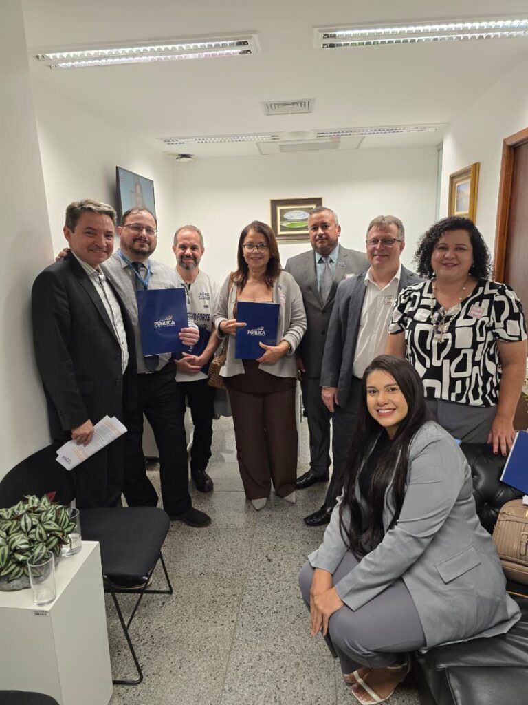 Os representantes da Pública informaram sobre o trabalho que vêm fazendo junto aos gabinetes dos deputados e senadores, entre outras pautas. Terminada a reunião, os representantes da Pública se dirigiram à Câmara dos Deputados e, durante essa visita, entregaram memoriais sobre projetos importantes para os(as) servidores(as) públicos(as).